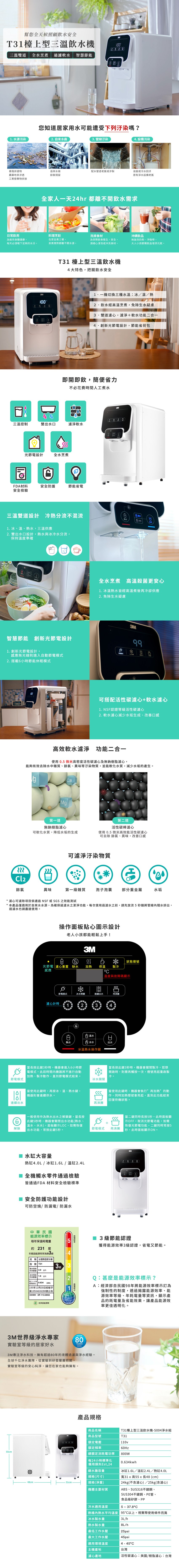 3M T31 檯上型冰溫熱飲水機(內搭S004淨水+軟水過濾)