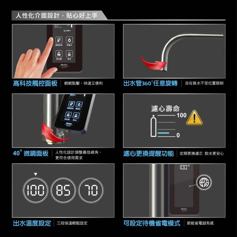 - 三段出水温度设定:100˚C、85˚C、70˚C三段保温轻松设定。